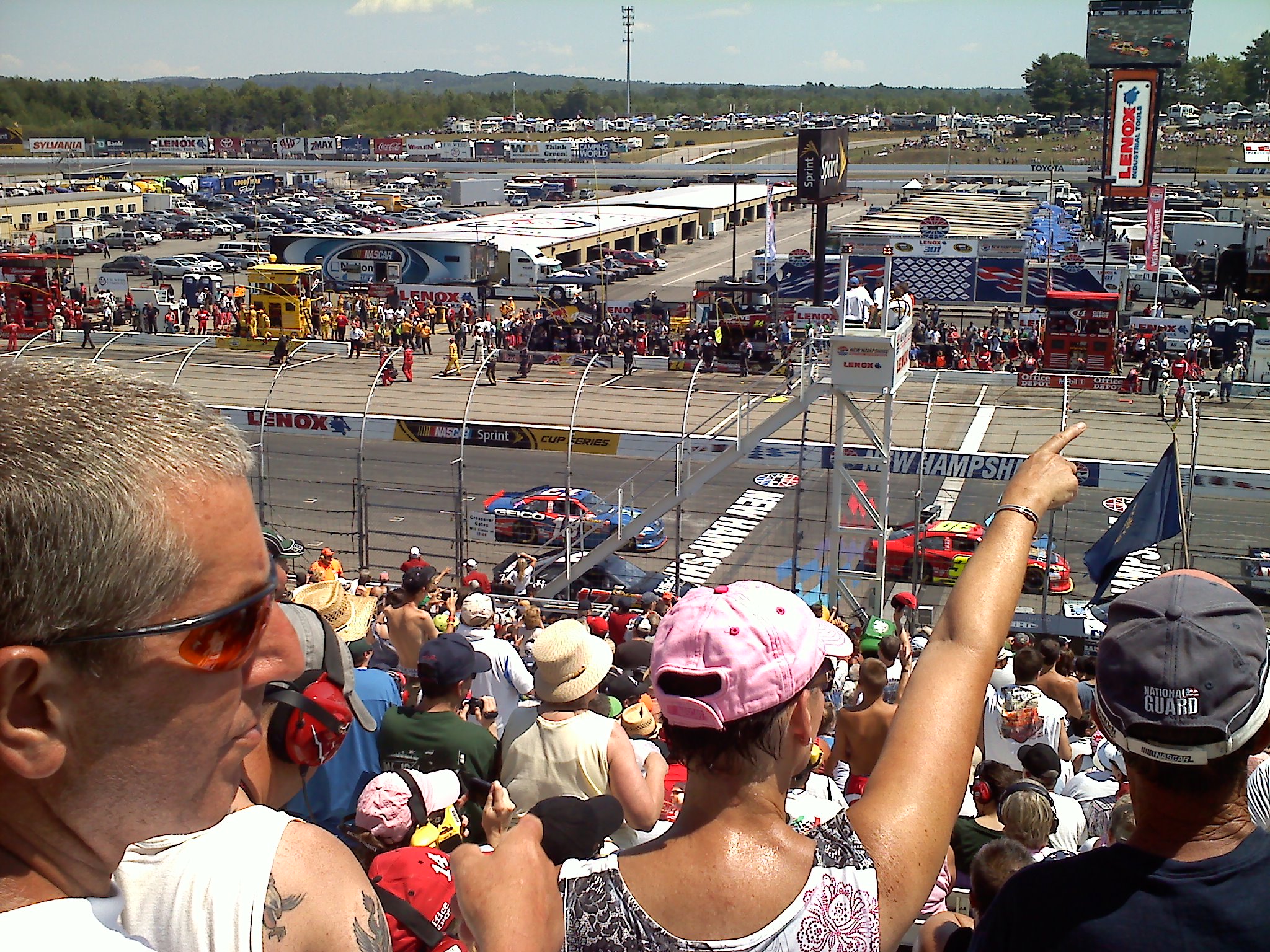 Sitting in row 22 on the start/finish line, it was a little toasty on the metal bleachers up in the grandstand. Temperatures were into the 90’s on race day. I was listening in on Dale Earnhardt Jr. as he said it was so hot inside the car he could feel his face blister.