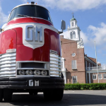 These 12 Futuristic buses toured until the mid 1950’s when they were retired from the parade duties. Over the next 50 years they all went different directions. Some landed in museums, some in private collections and some were sadly left rotting into the earth. In 1995, the Peter Pan Bus Company owner procured himself Futurliner #7, which was restored to its former beauty and then became the company mascot for the next 15 years.